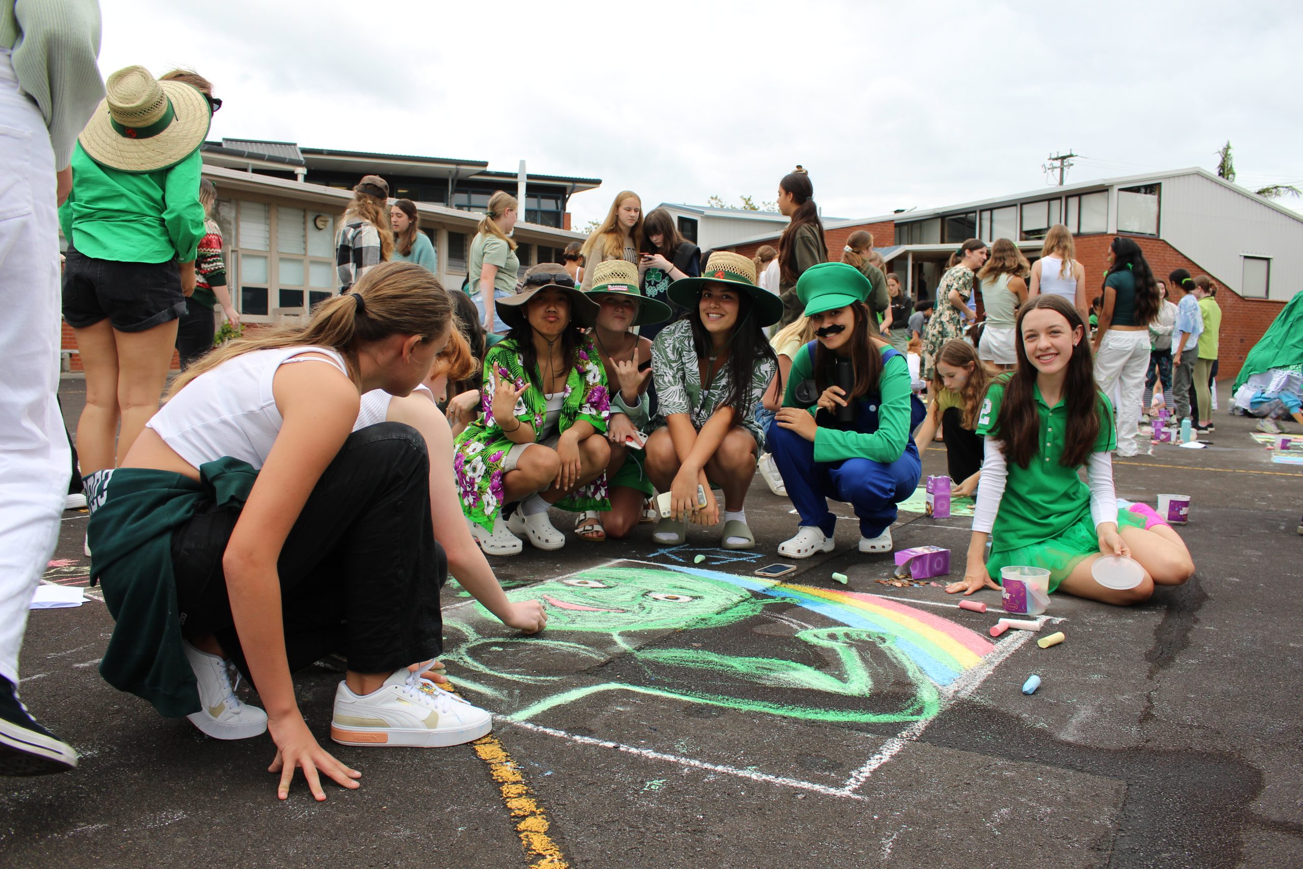On 17 March, we held our annual school Coin Trail in celebration of St. Patrick’s Day. After weeks of fundraising within Atawhai, the students and teachers had the opportunity to get involved by dressing up in their brightest green and taking part in an Atawhai chalk design and photo competition that illustrated the core Mercy value of 2023, Courage (Maia).