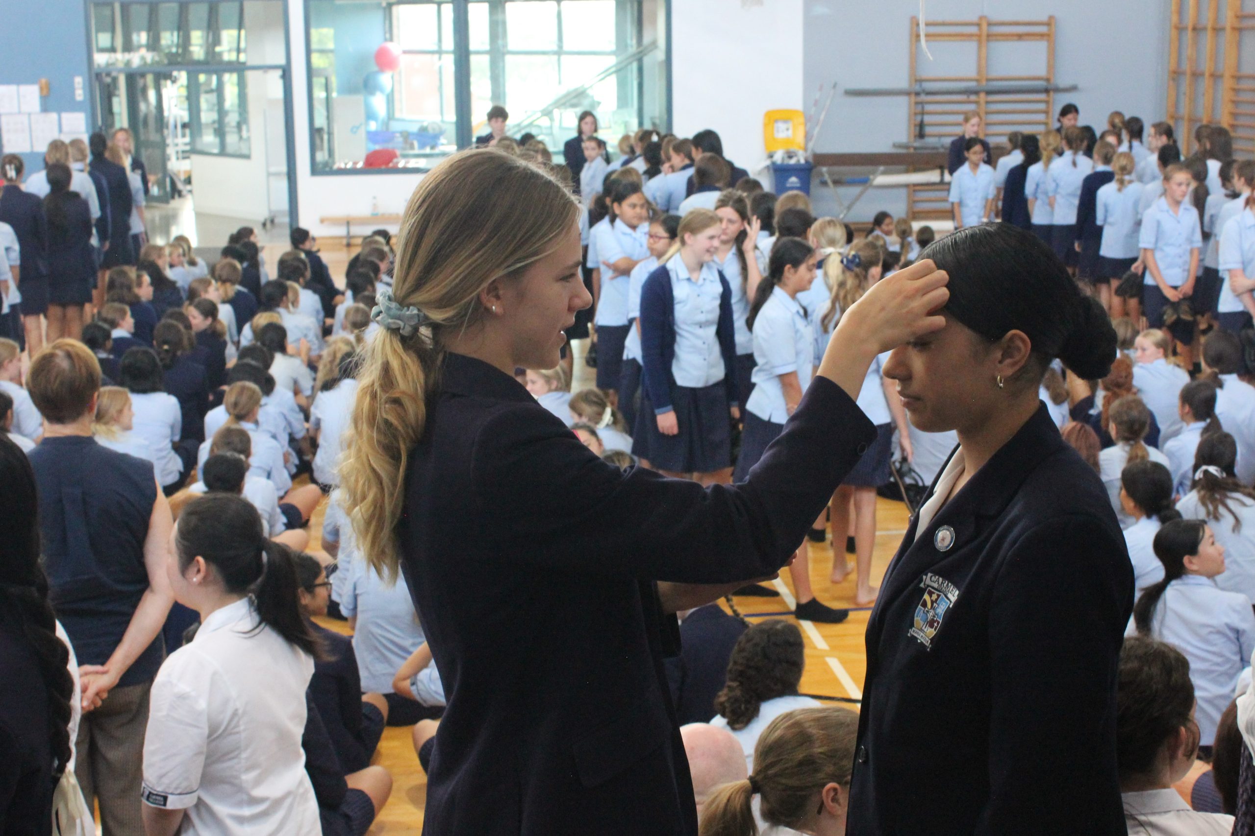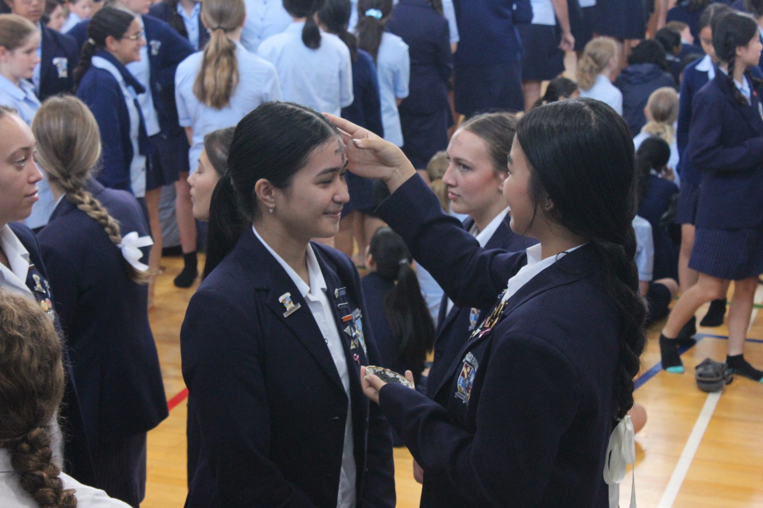 On Ash Wednesday, staff and students received ashes to remind us that as human beings we are created and part of the natural world.  This practice echoes the Old Testament tradition of wearing ashes as a sign of repentance.  The ashes come from the burnt palms saved from Palm Sunday last year.   As the ash cross was made on our forehead, we heard the words that echoed John the Baptist’s call to conversion, “Turn away from sin and be faithful to the gospel.”  We responded ‘Amen’ meaning ‘So be it’.