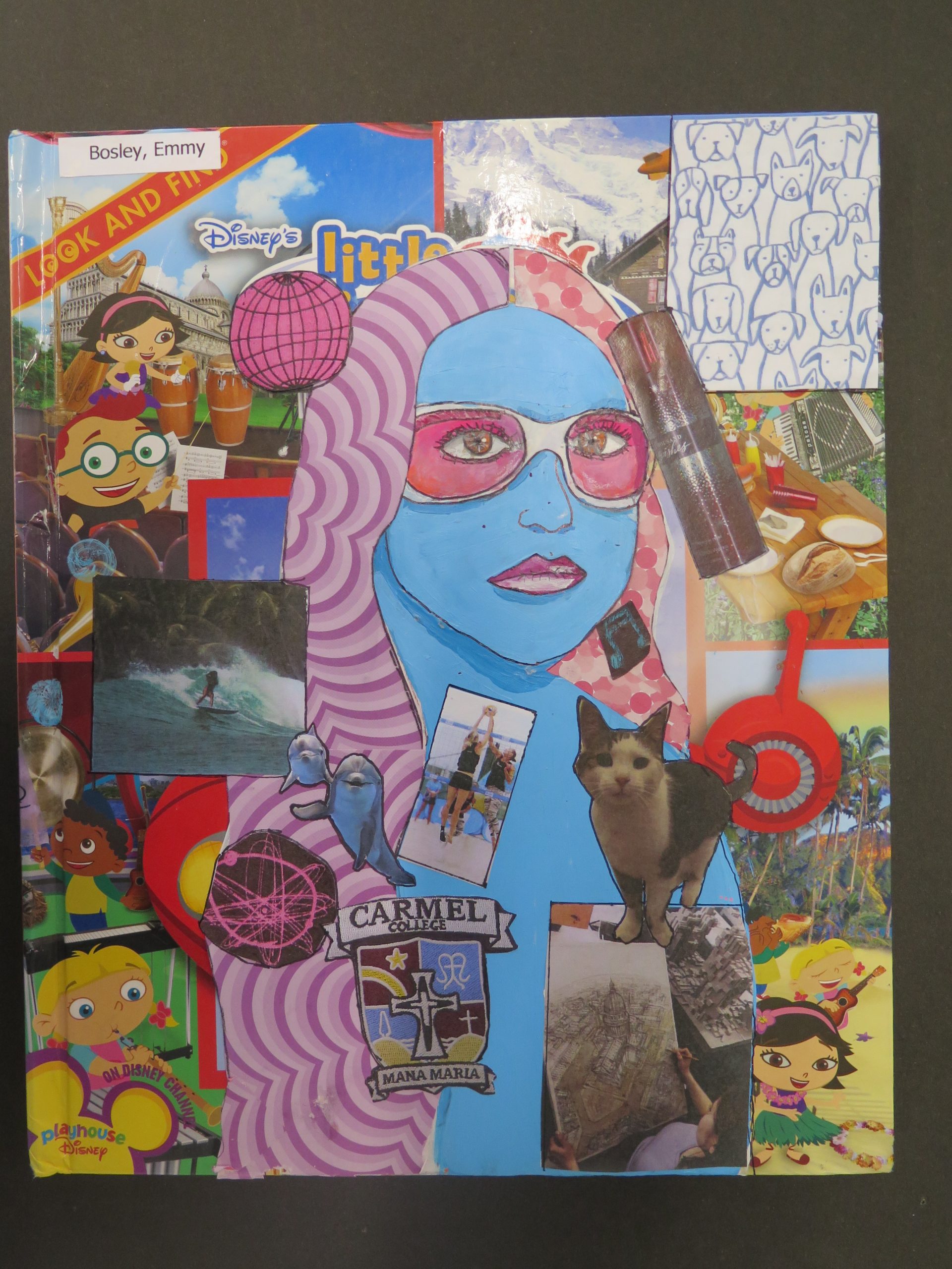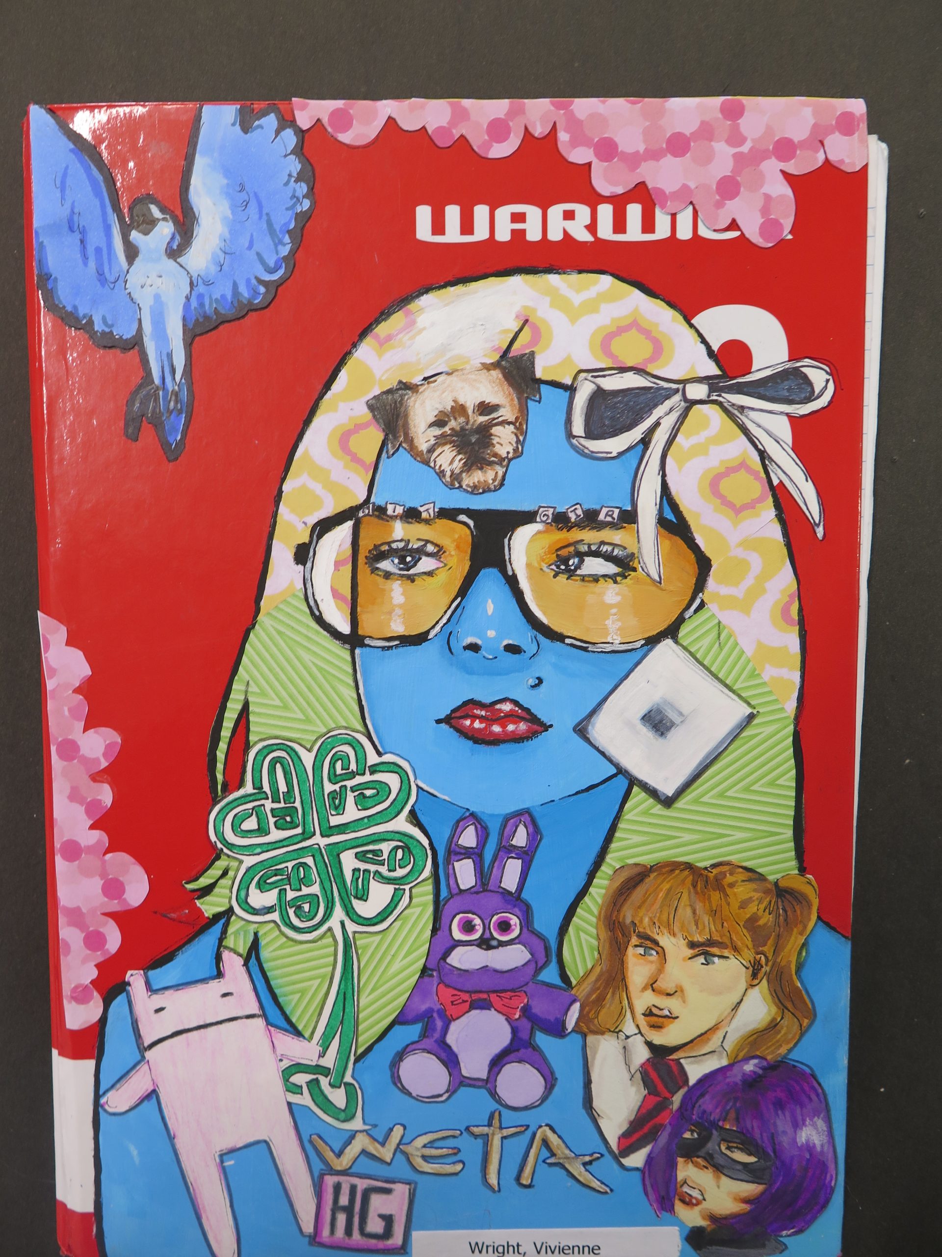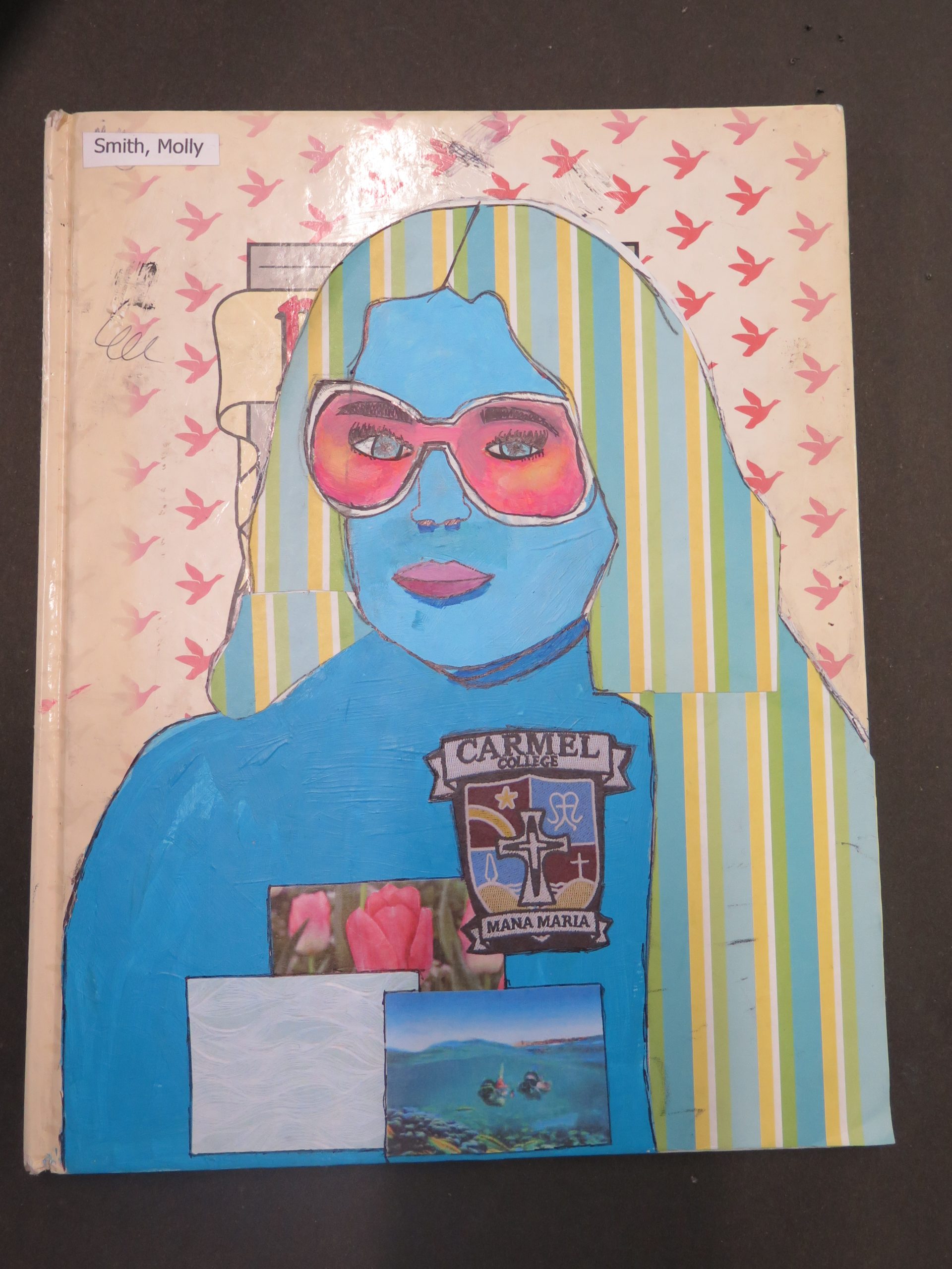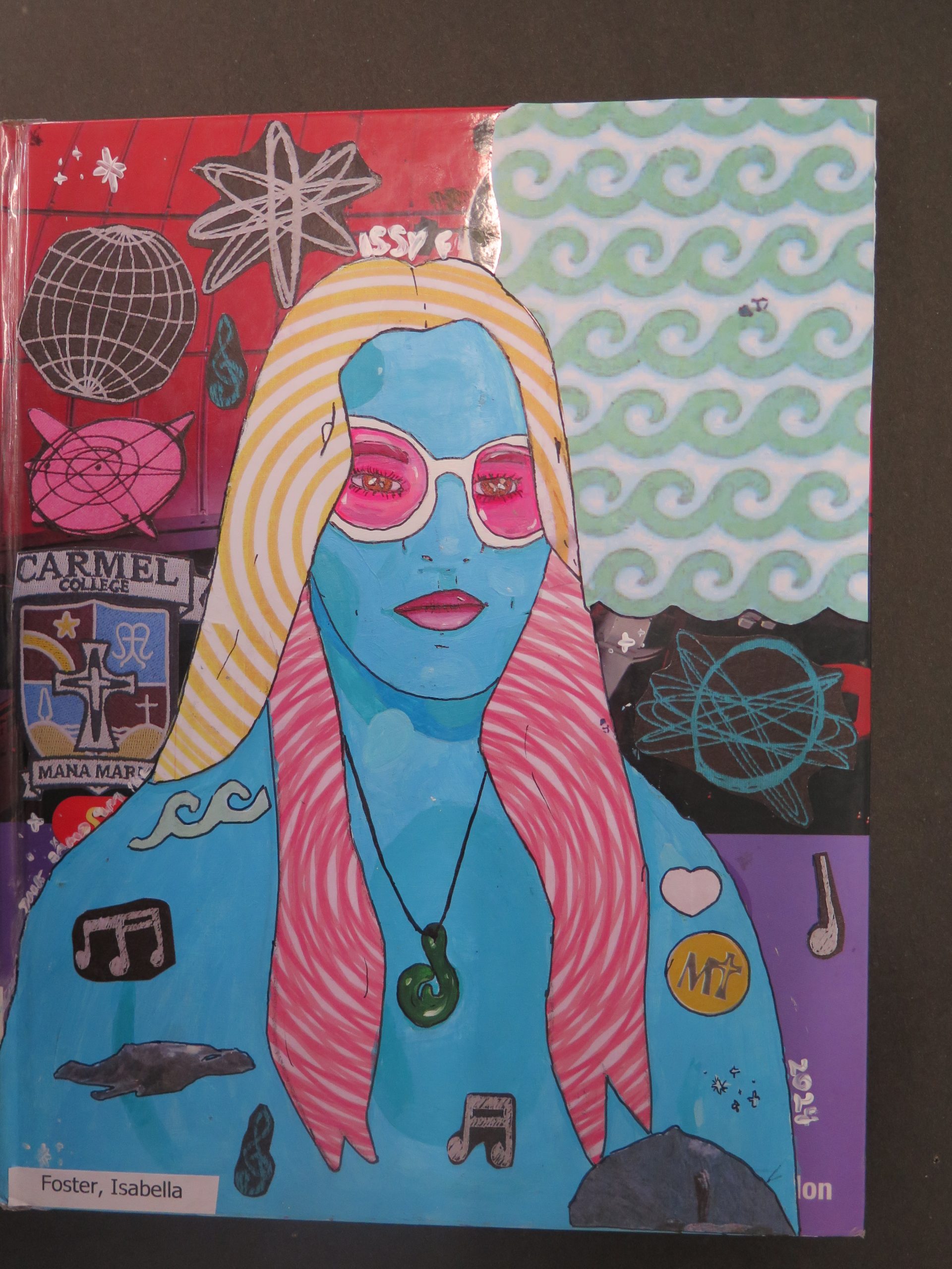Year 10 students have just finished their self-portraits on book covers. Students worked in the style of ex Carmel student (Alumni) and famous Auckland artist, Sam Mitchell, to create these self-portraits surrounded with images relating to their interests and future aims.
