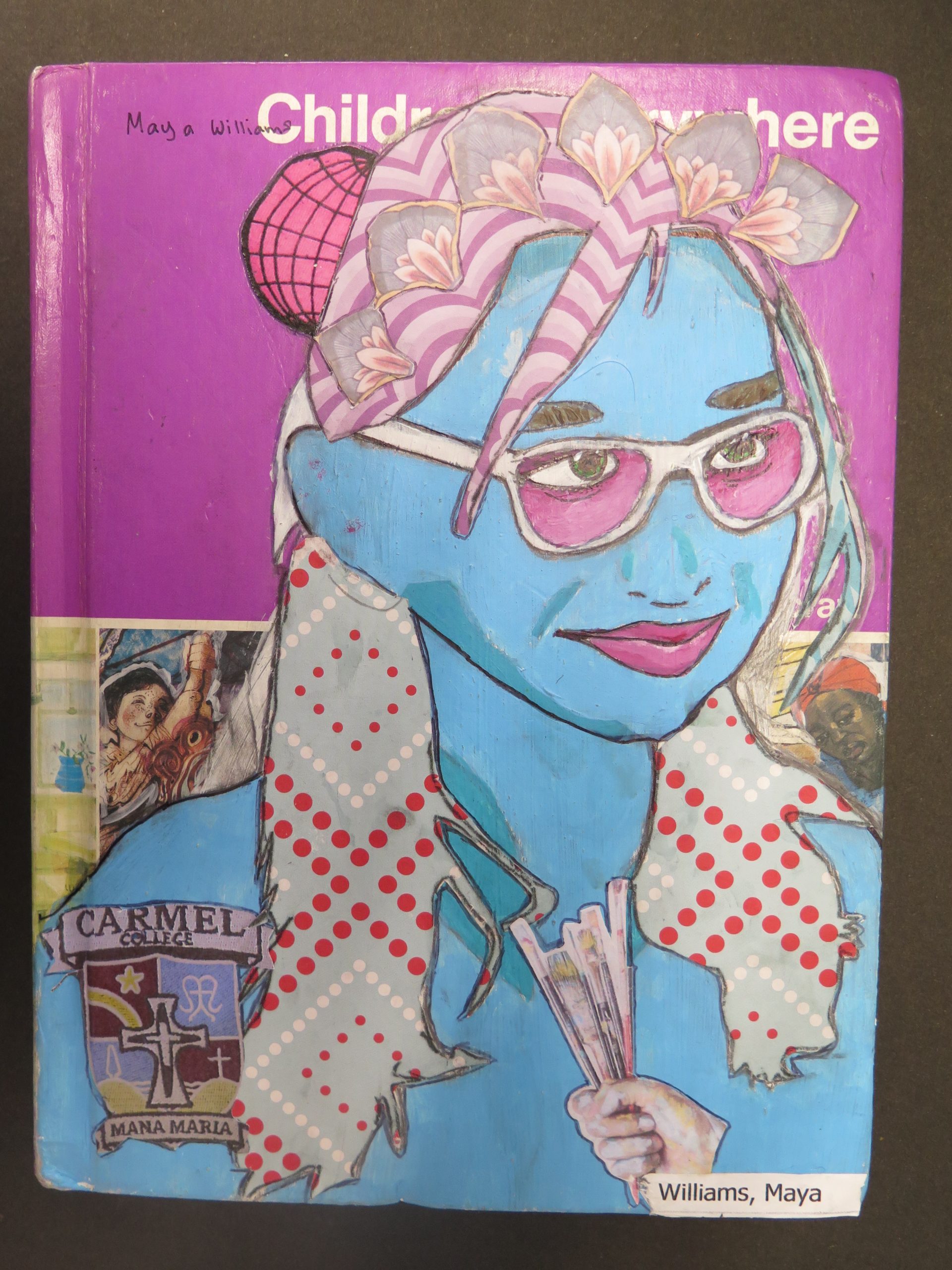 Year 10 students have just finished their self-portraits on book covers. Students worked in the style of ex Carmel student (Alumni) and famous Auckland artist, Sam Mitchell, to create these self-portraits surrounded with images relating to their interests and future aims.