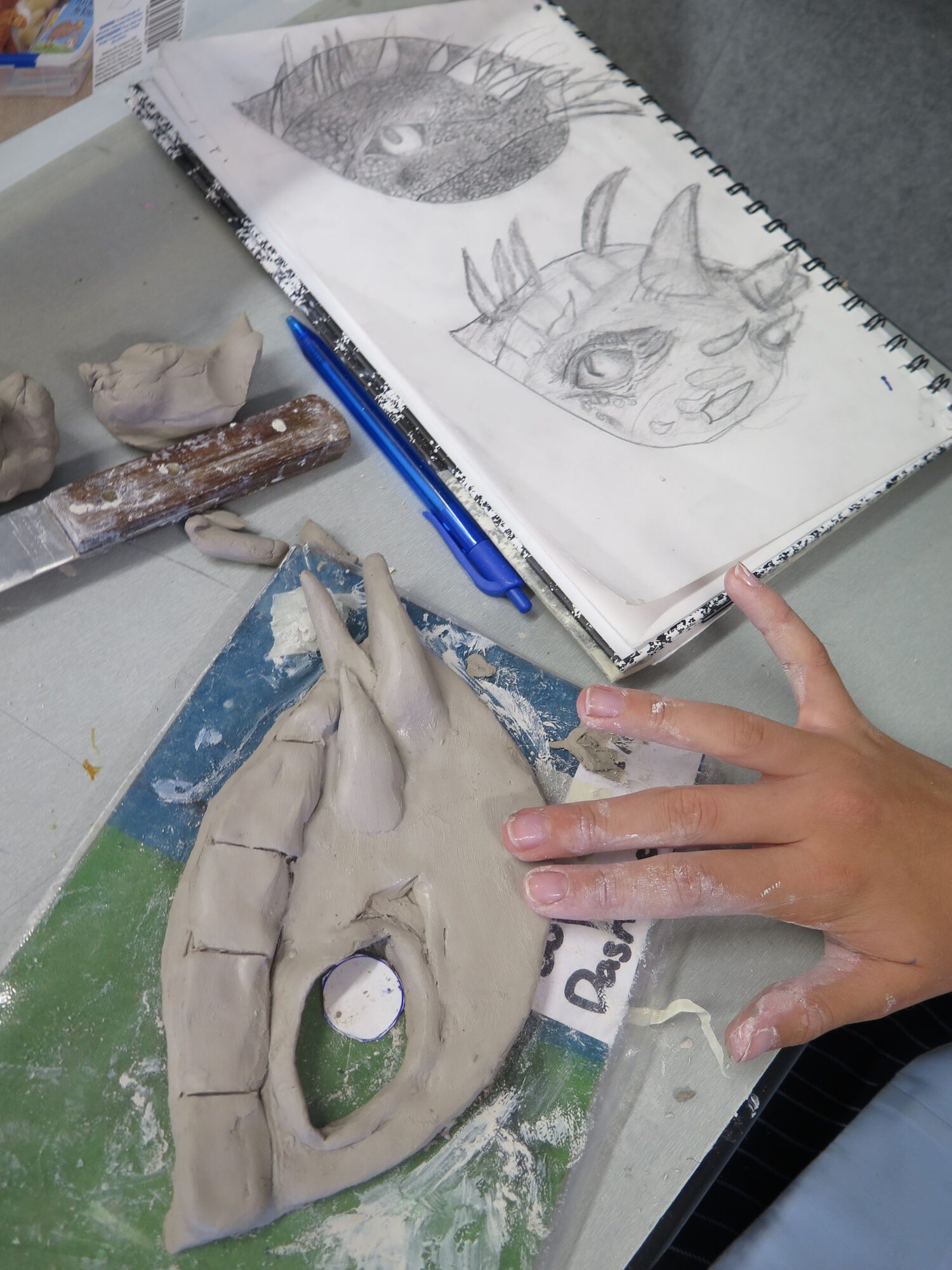 A work in progress, this is the Year 10 ”Dragon Eye” ceramic project which is still to be fired.