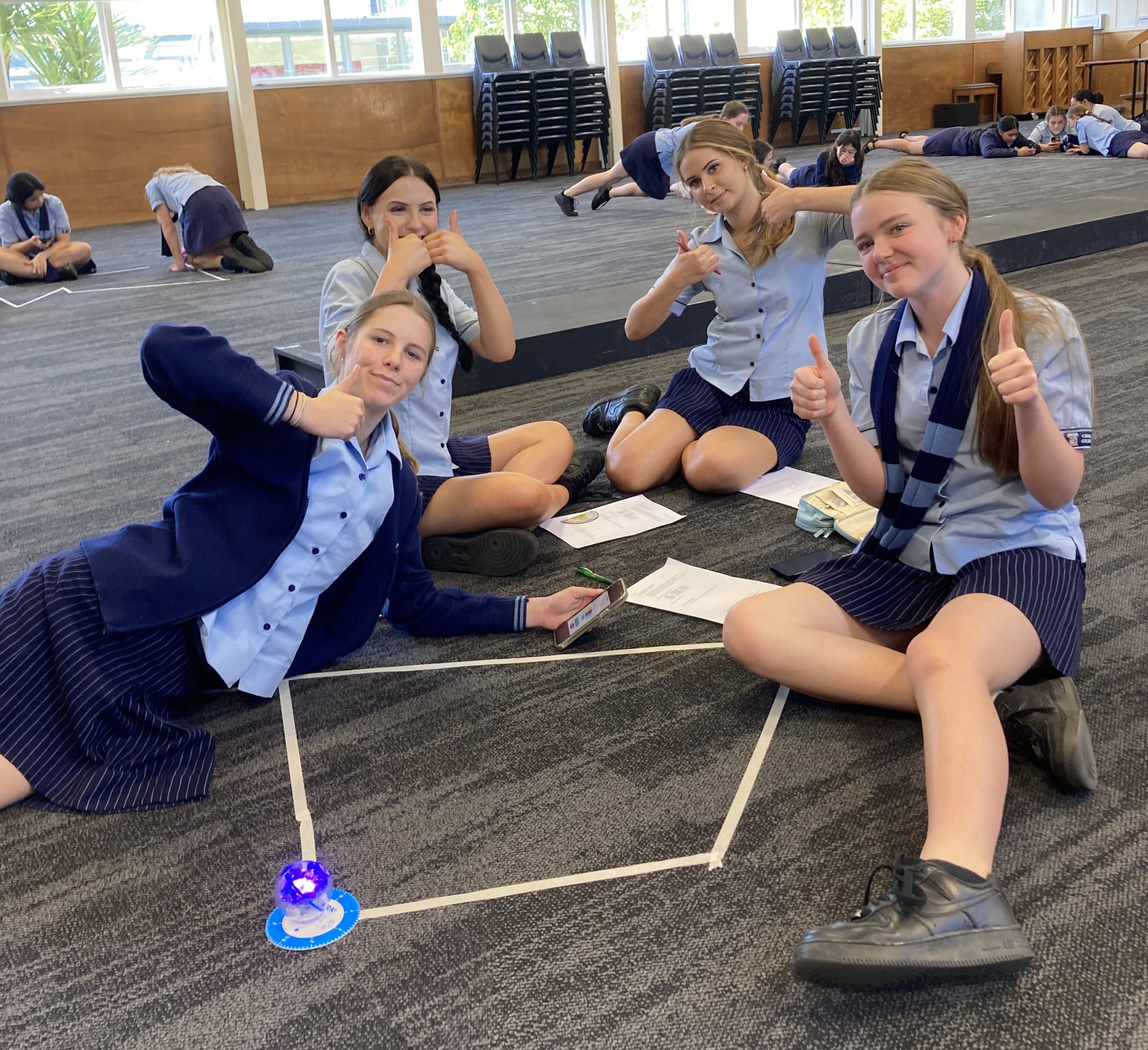 The Year 10 classes have recently enjoyed learning how to programme a Sphero, a robotic ball. Students used their knowledge of geometry to guide the Sphero around various shapes.