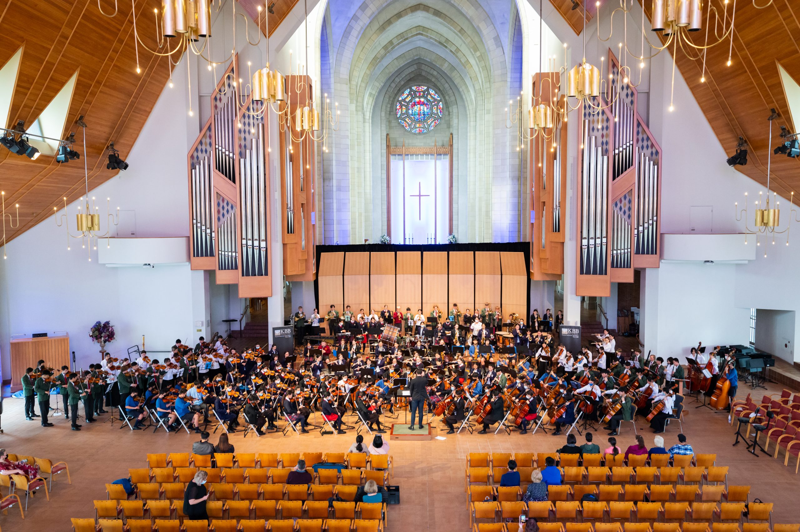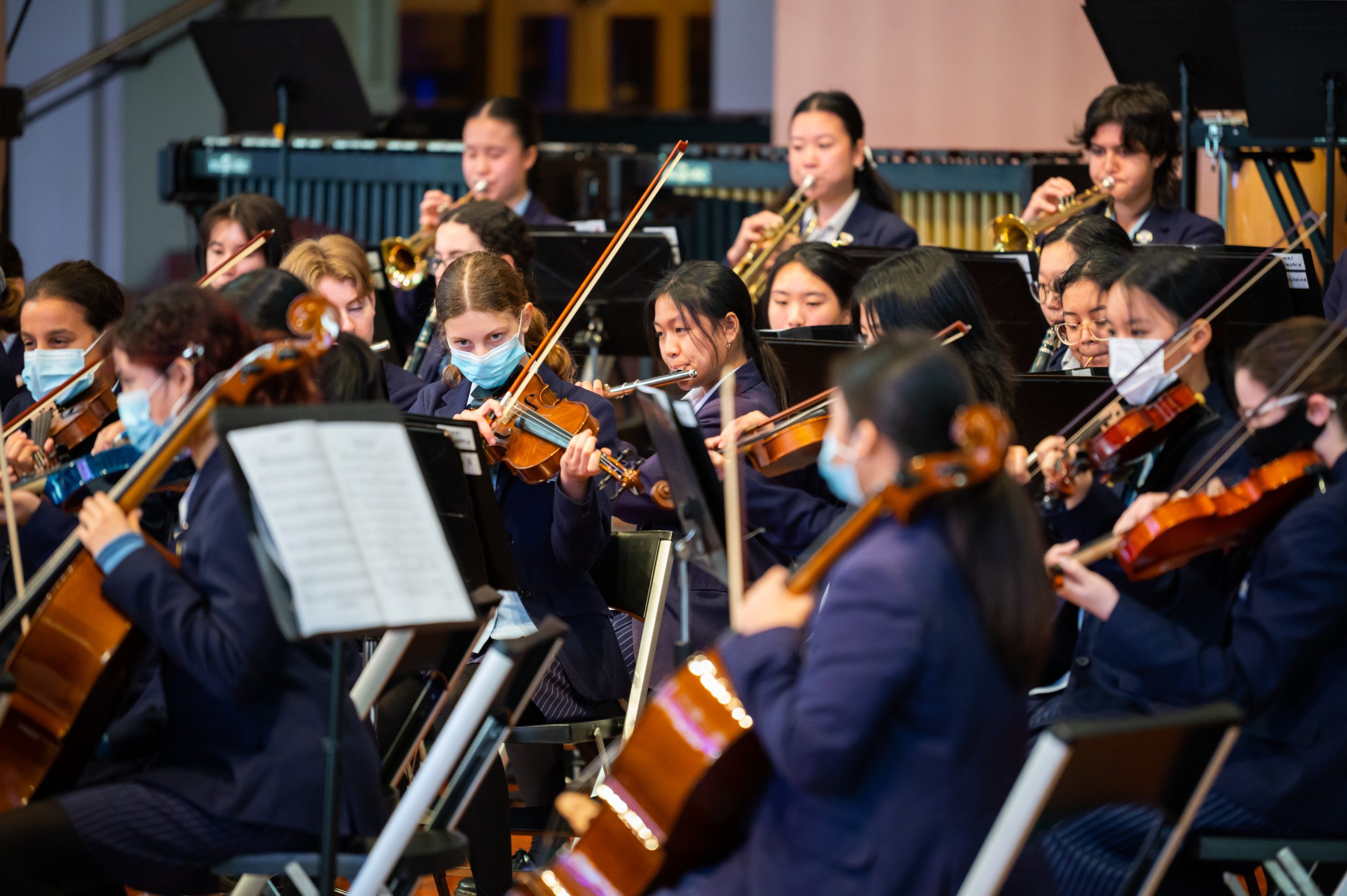 When the restrictions were lifted slightly in Term 2 the Orchestra moved rehearsals inside but as we were still under some restrictions, we had to use the school’s atrium in order to spread out and keep students safe. We’d like to thank the Faith Cafe for working with us and all the students who kept their noise to a minimum as we shared this space on Friday mornings before school.