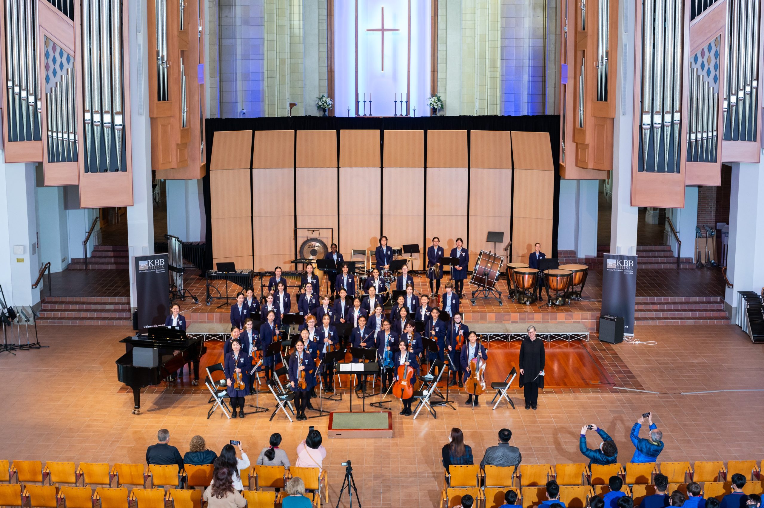 On Tuesday 9 August the Carmel Orchestra performed at the KBB Music festival. The Carmel Orchestra is a non-auditioned Year 7-13 Orchestra and, like all schools in New Zealand, Orchestra rehearsals have been very disrupted this year. Term 1 saw the Orchestra rehearsing the woodwind and brass sections outside the boat shed; definitely not for those who feel the cold. Rehearsals were run separately with the strings and percussion, rehearsing inside and the brass and woodwind outside. These rehearsals were run by senior students with Mrs Brockelbank (Orchestra Director) alternating between them.