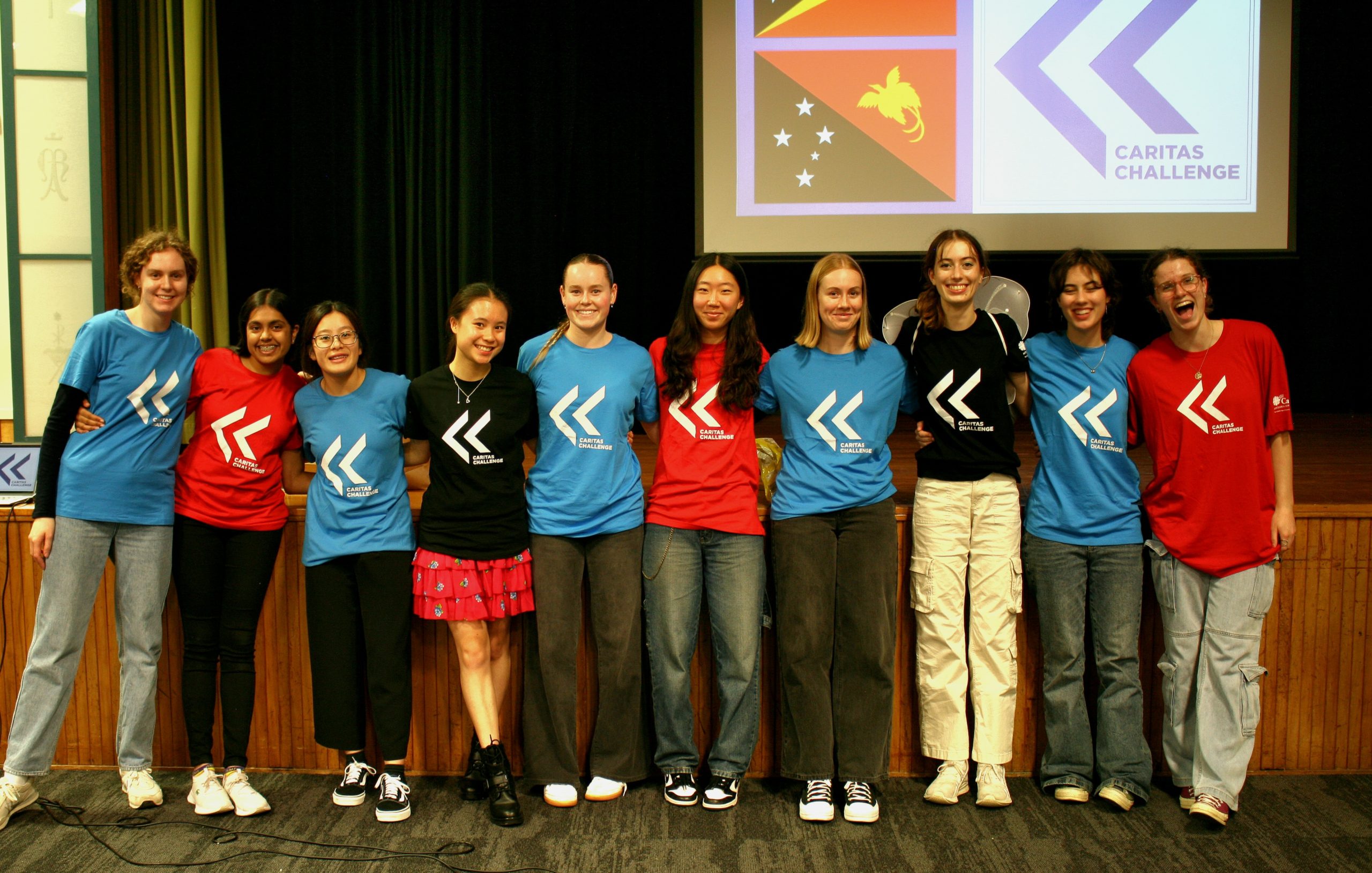 It was a fun and jam-packed night with four main rotational workshops. First was the obstacle course, which illustrated the challenges people face when trying to access sufficient food, water and education in Papua New Guinea and Timor-Leste. Second was the “Mix and Match” activity, which helped students gain a better understanding of Caritas’ Ethical Principles and values. Third was a Bible search, where students explored various biblical themes related to social justice and compassion. Lastly, we ended the night with a hands-on shelter-building challenge. Using cardboard, students creatively constructed the safest and most durable homes, showcasing the resourcefulness needed in real-life situations.