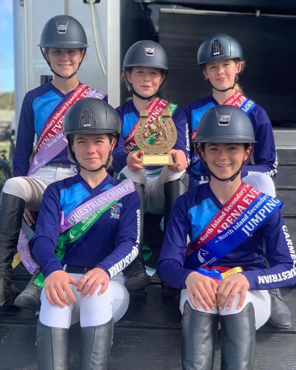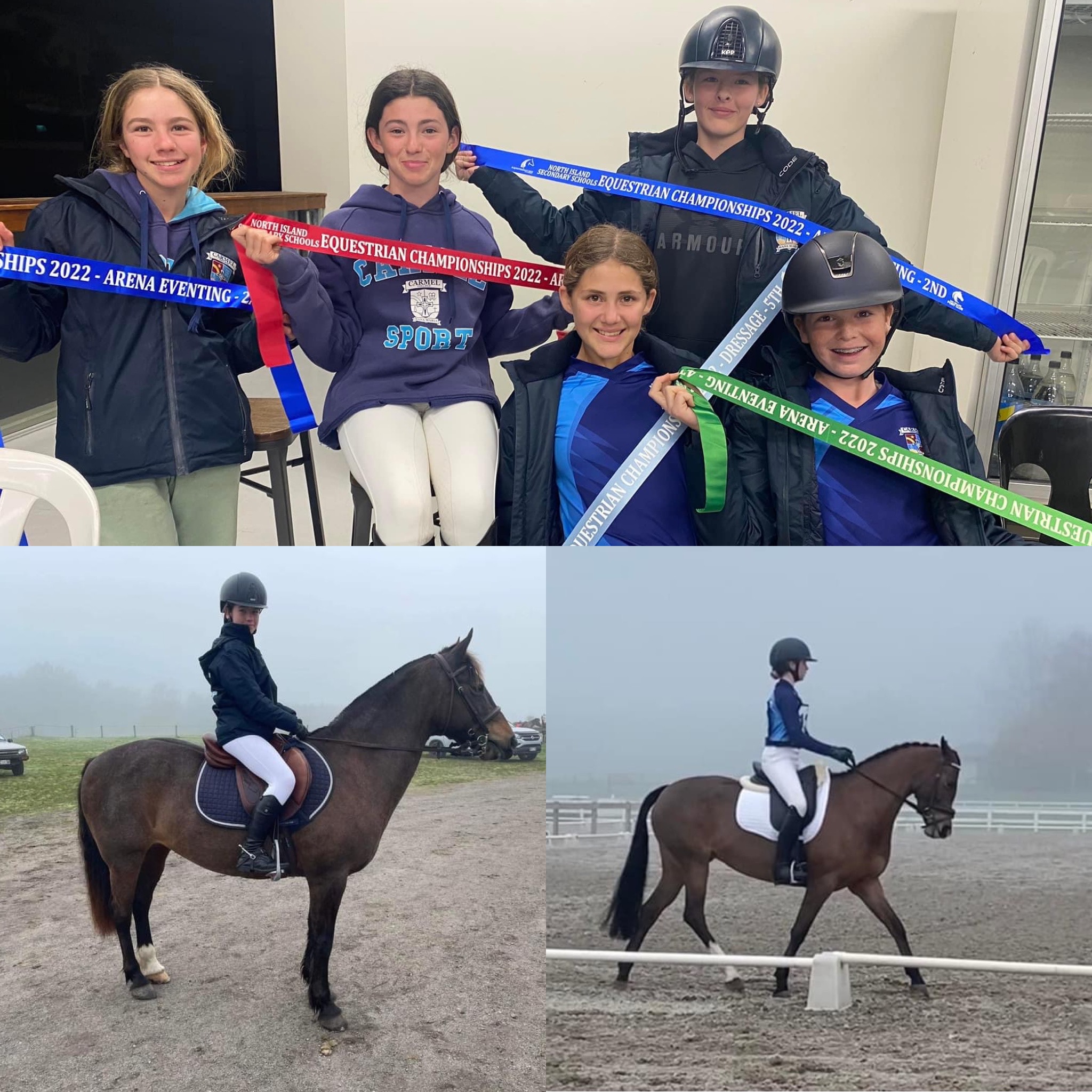 Overall Arena Eventing Champions at the inaugural North Island Equestrian Champs. Special mention to Mia Cadwallader – 4th overall dressage; Lili-May Chamel – 2nd overall show jumping 90-1m pony; and Caitlyn Wilkin – 6th overall show jumping 80/90 ponies. Big thank you to Zoe Chamel and Kayla Smith for the background work to get this team there. Thank you also to Jaime Campbell for giving up her time to come down and help coach the girls.