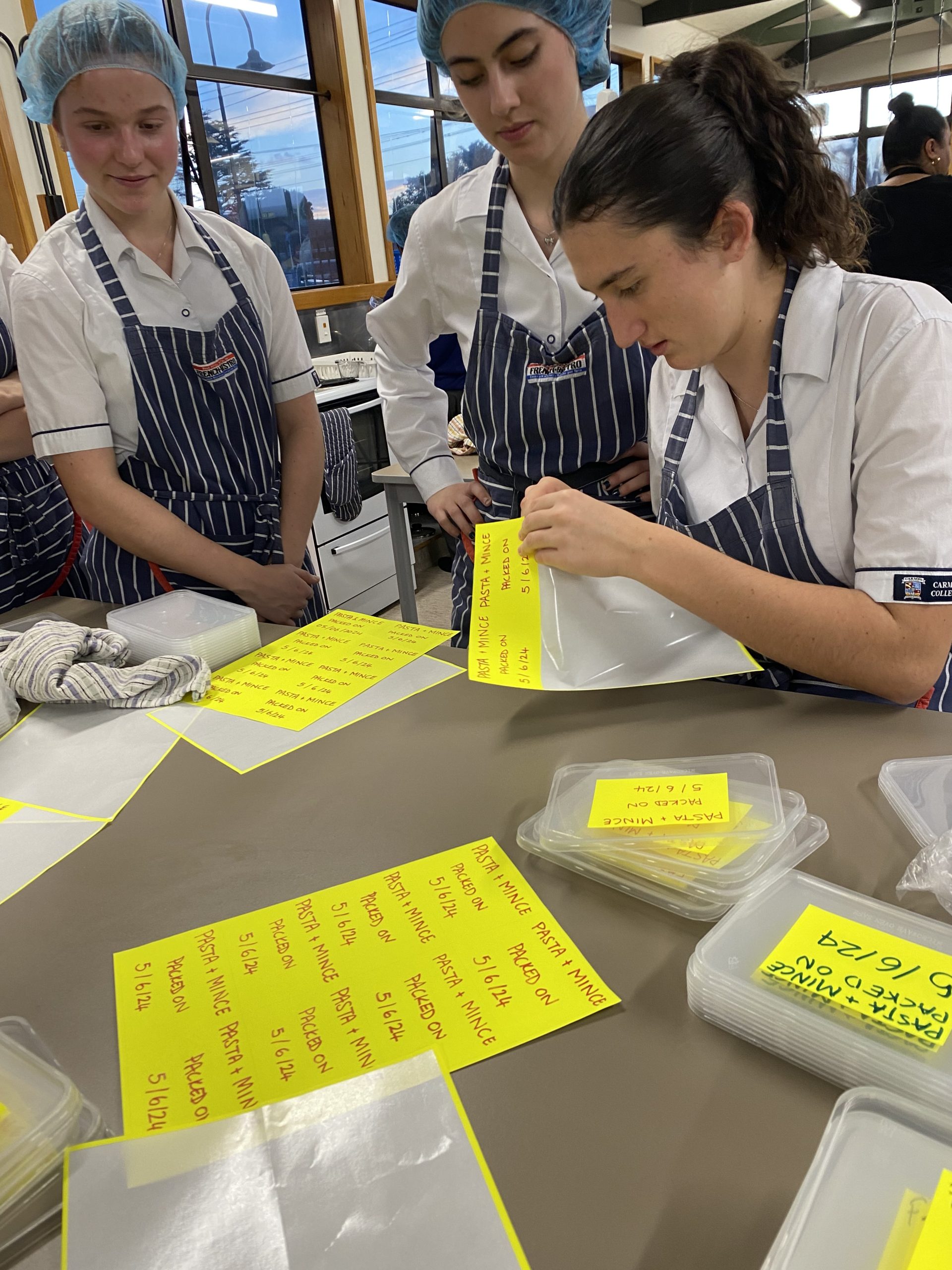 On 5 June, members of the Carmel Young Vinnies and the Rosmini Young Vinnies came together at Carmel to participate in Travelling Pots. This is an evening in which we prepare, cook and package meals to be distributed to individuals and families who seek food assistance from Vinnie’s food bank. These individuals or families do not necessarily have the resources to create balanced meals, so this event truly makes a difference to people. With the help of our youth coordinator, Savi, we cooked and packaged 81 mince and pasta meals.