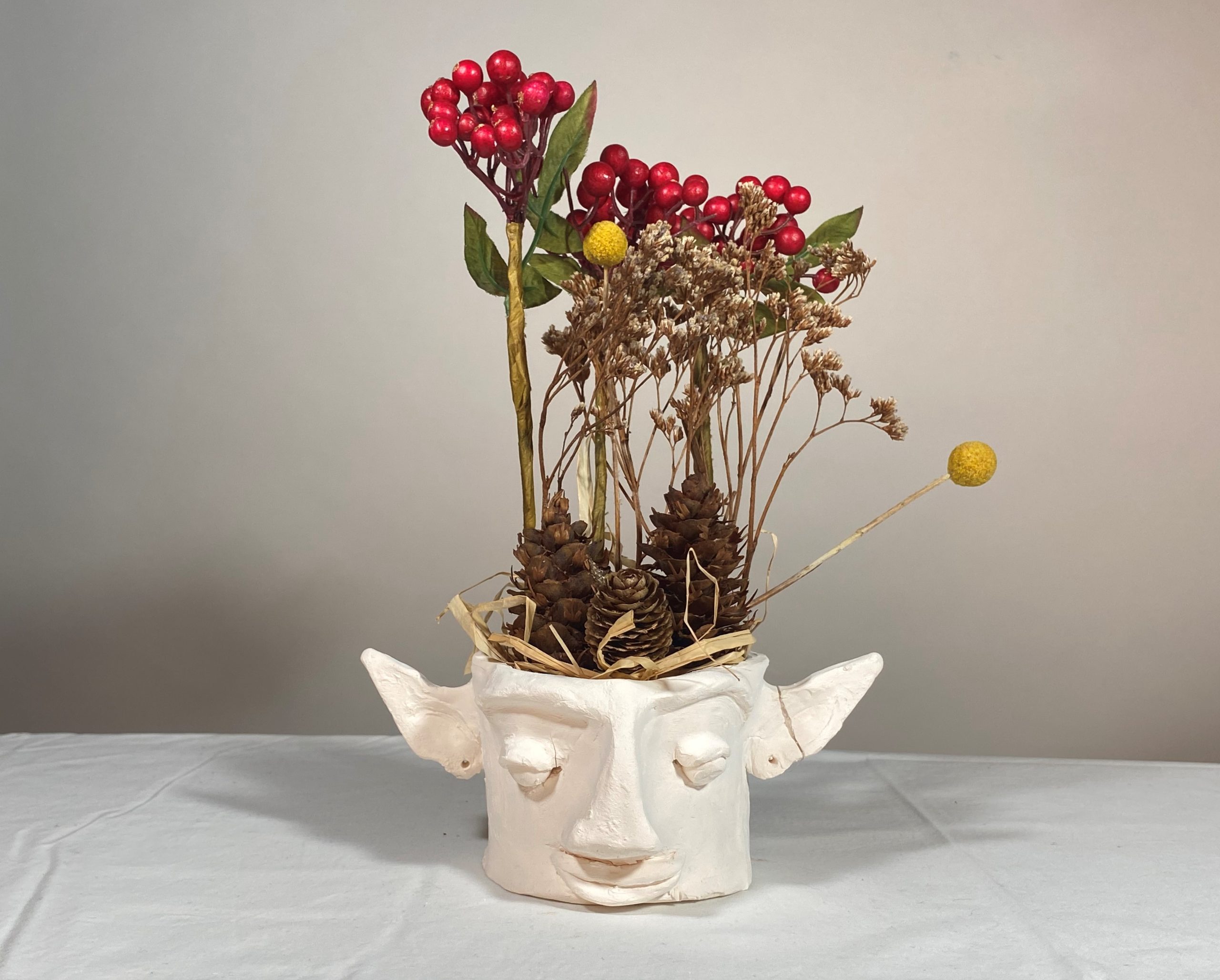 The Year 10 Art classes worked with visiting photographer, Aimee MacMillan, over three lessons in Term 2 to produce a photo based on the work of NZ photographer, Emma Bass (photo above). This followed a project where students made a vase with a face from clay which was fired. Students used their ceramic sculpture vases as the basis of their arrangement.