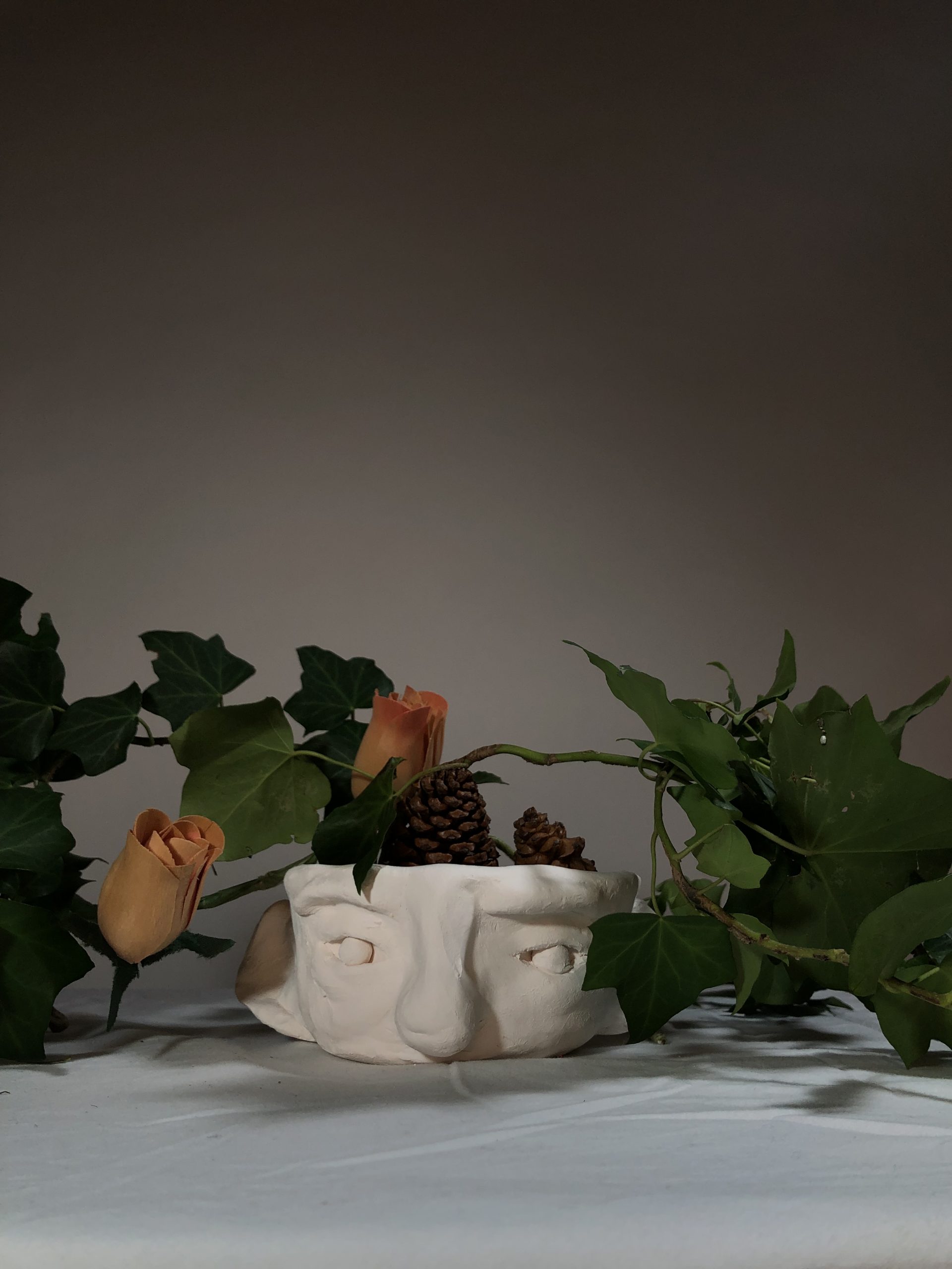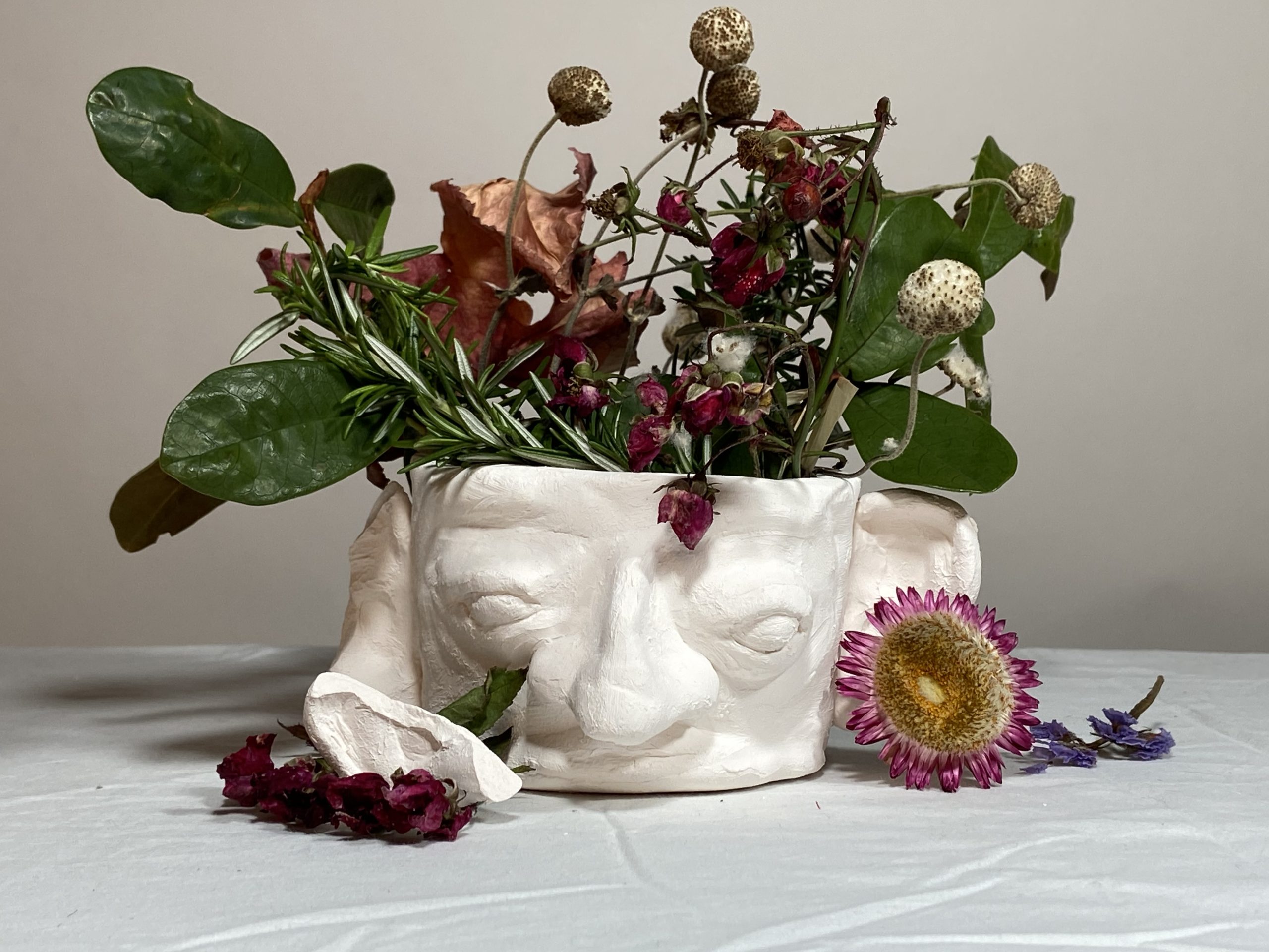 The Year 10 Art classes worked with visiting photographer, Aimee MacMillan, over three lessons in Term 2 to produce a photo based on the work of NZ photographer, Emma Bass (photo above). This followed a project where students made a vase with a face from clay which was fired. Students used their ceramic sculpture vases as the basis of their arrangement.