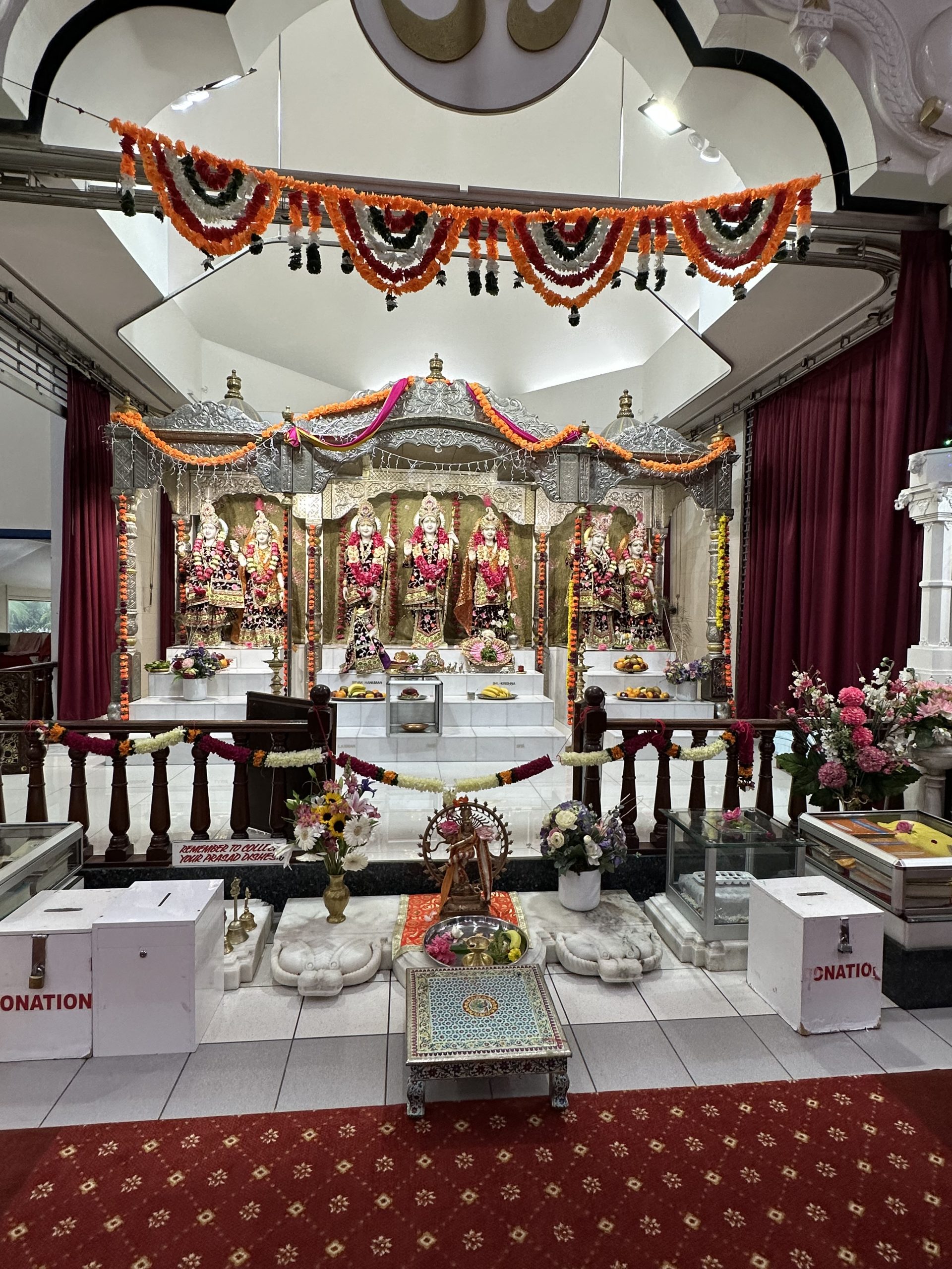 Next, we travelled to a Hindu mandir. This sacred space had several statues of deities and areas where you could place your offerings. There was an emphasis on each person being divine and life being a continuum as they believe in reincarnation. We were also told that around 80 festivals are held yearly in this particular mandir, including a large feast every Tuesday that can feed up to 1000 people. As part of their tradition, we were each offered a banana before leaving the mandir.
